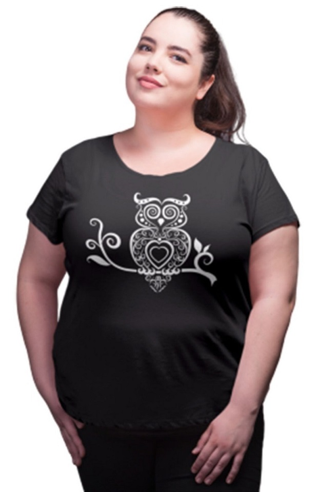 Womens Cotton T-shirt Round Neck Black-Owl