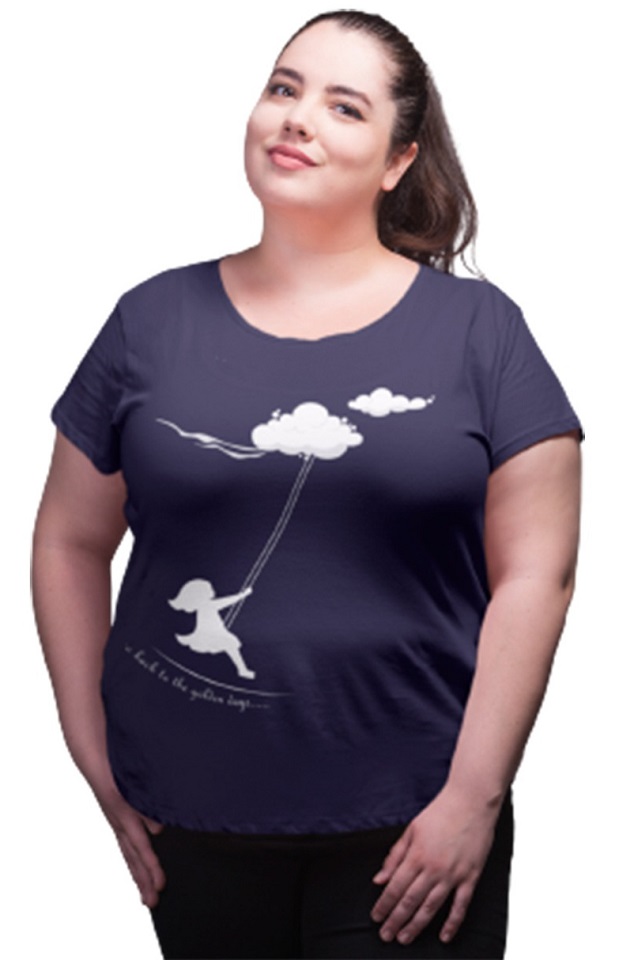 Womens Cotton T-shirt Round Neck Blue-Clouds