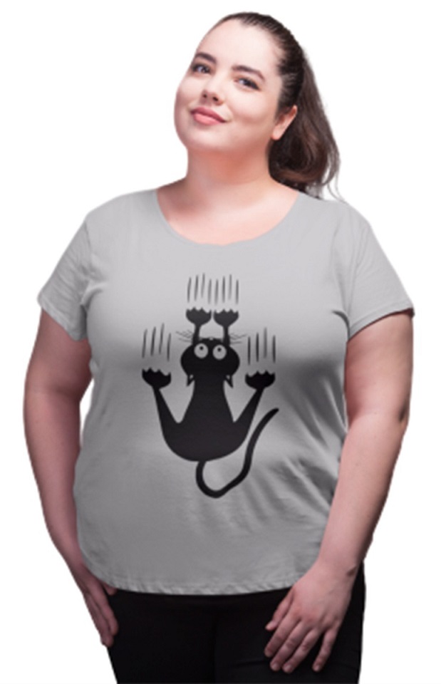 Womens Cotton T-shirt Round Neck Black-Cat