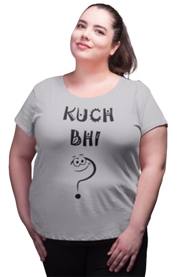 Womens Cotton T-shirt Round Neck Grey-Kuch-Bhi