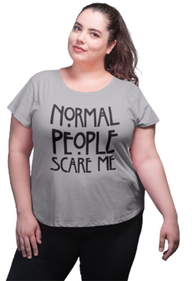 Womens Cotton T-shirt Round Neck Grey-Normal-People