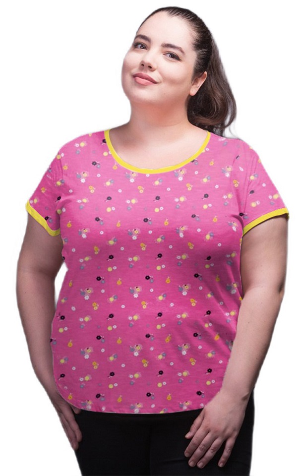 Womens Cotton T-shirt Round Neck Pink-Yellow