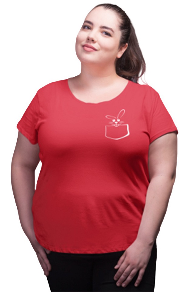 Womens Cotton T-shirt Round Neck Red-Rabbit