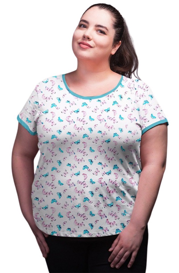 Womens Cotton T-shirt Round Neck White-Blue-Butterfly