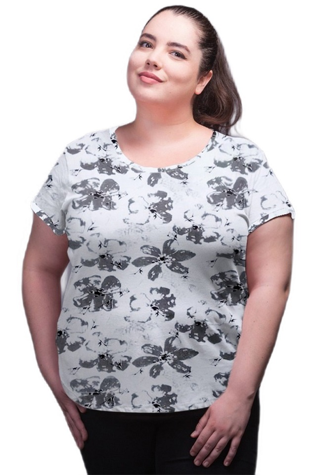 Womens Cotton T-shirt Round Neck Grey-Flower