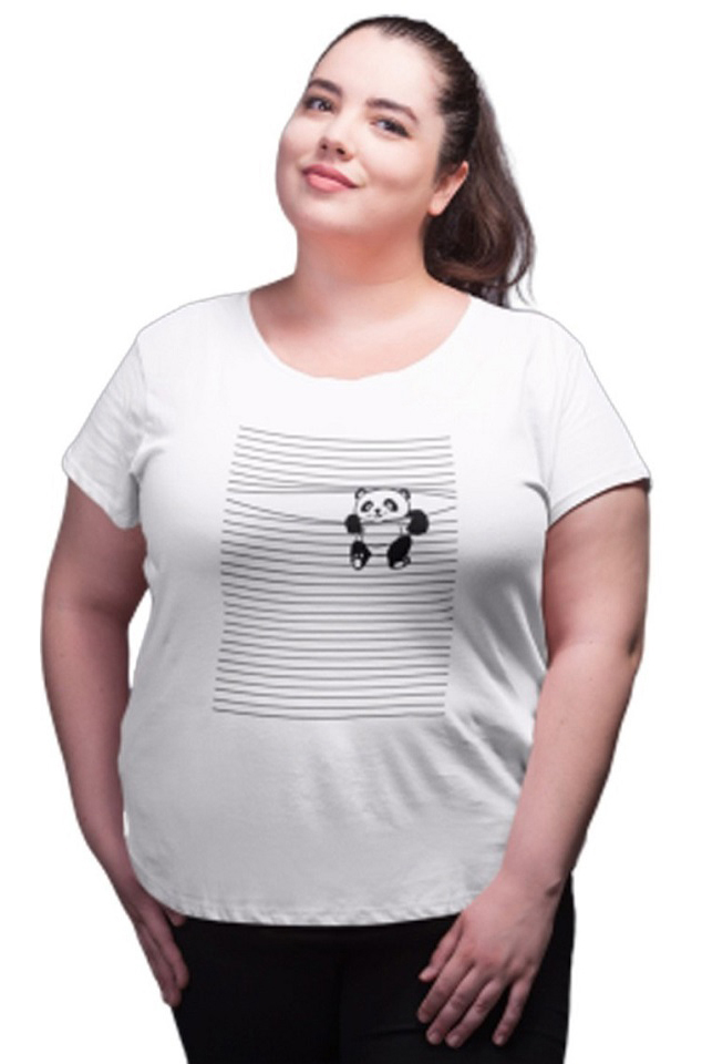 Womens Cotton T-shirt Round Neck White-Panda
