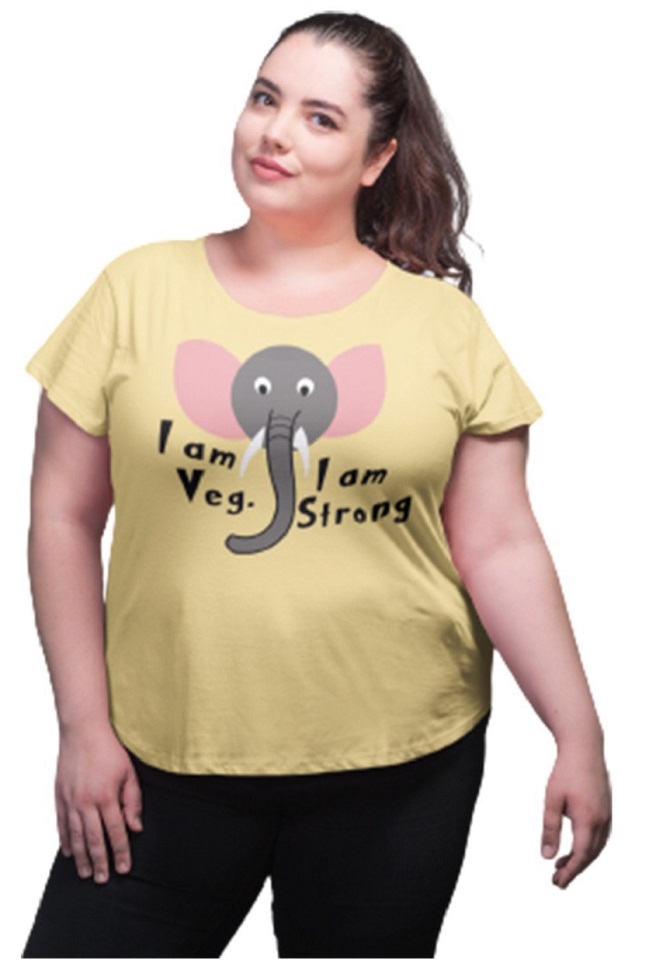 Womens Cotton T-shirt Round Neck Yellow-I-am-Veg.