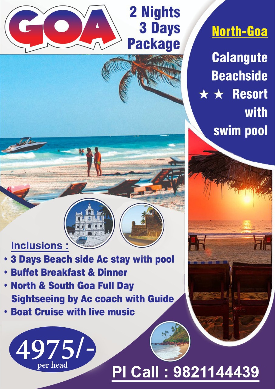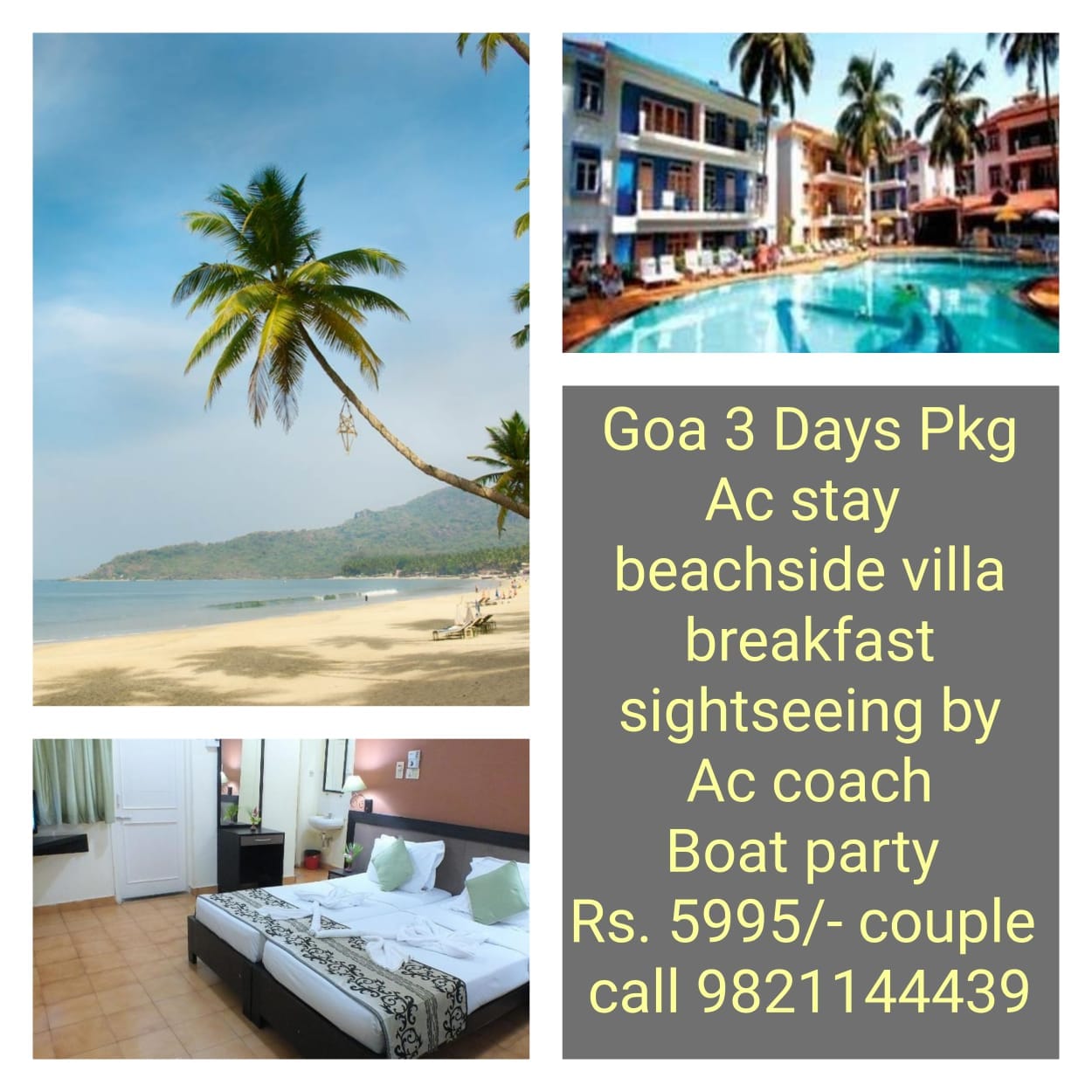 Goa 3 Days, AC Stay, beachside villa, sight seeing AC Bus, Boat Party & lots more...