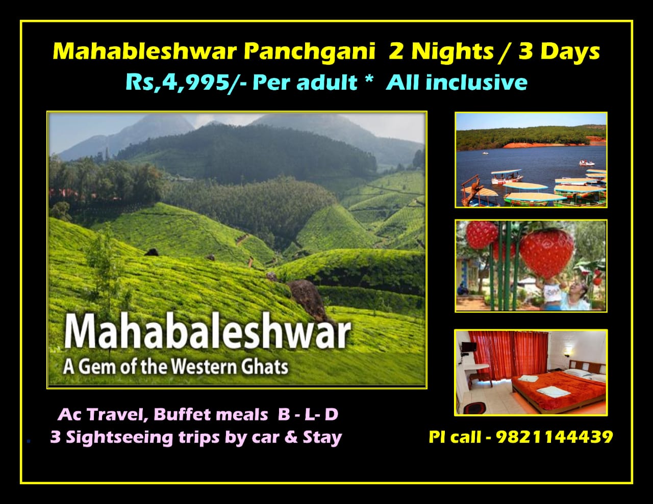 Mahabaleshwar Panchgani 3 Days, AC Stay, AC Travel, Buffet Meals, Sight seeing in exclusive car