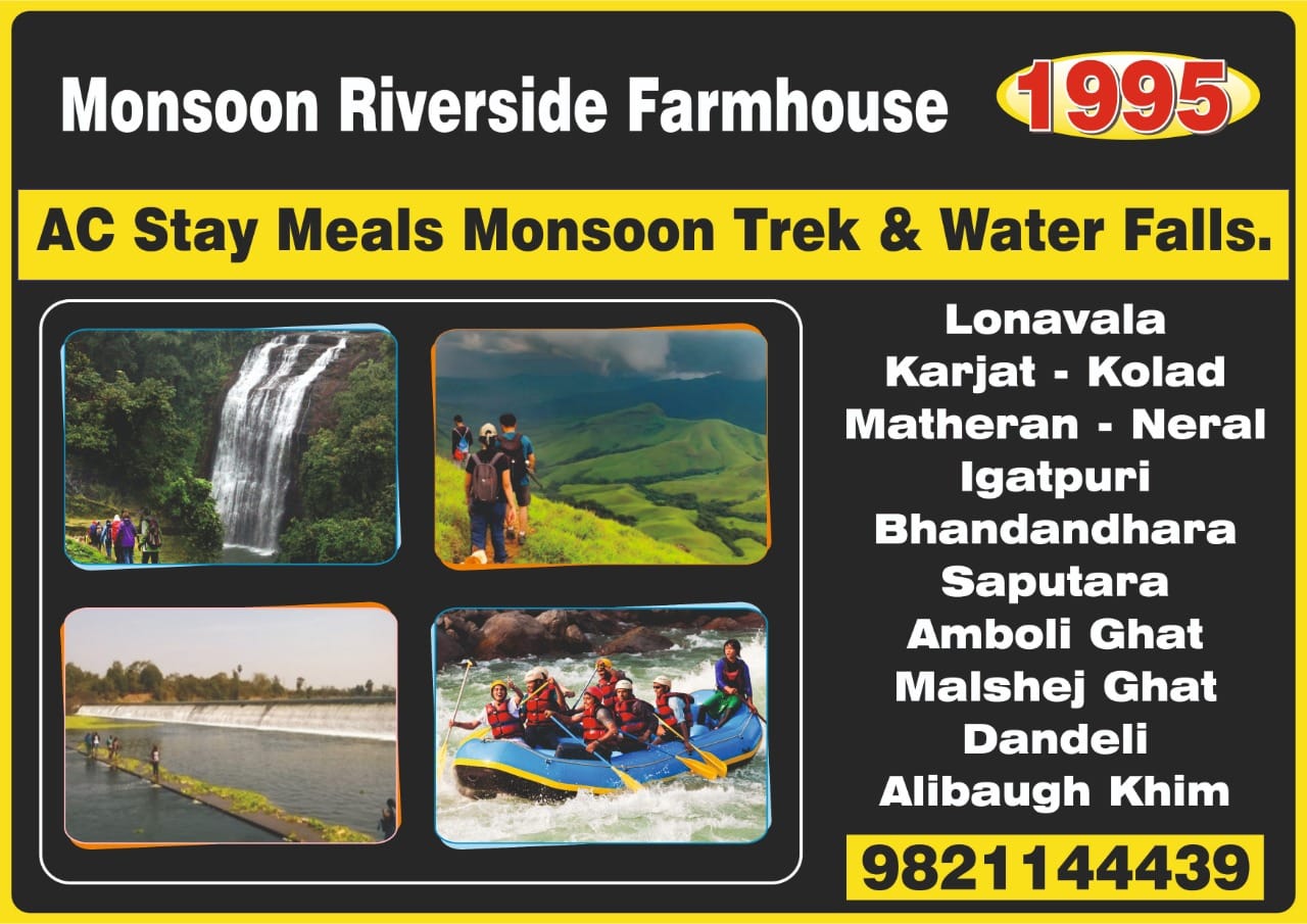 Monsoon Riverside Farmhouse AC Stay, Meals, Monsoon Trek & Water Falls